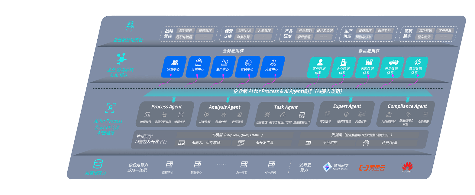 端到端的一站式AI工作空间深度融合了从企业战略规划到日常经营的全流程业务板块,,定向解决车企内部领域多、、部门多、、、、链条长、、、、场景碎片化等难题,,支持车企快速构建以AI为核心的生产力写作体系,,,实现任务执行与AI能力的无缝集成与交互